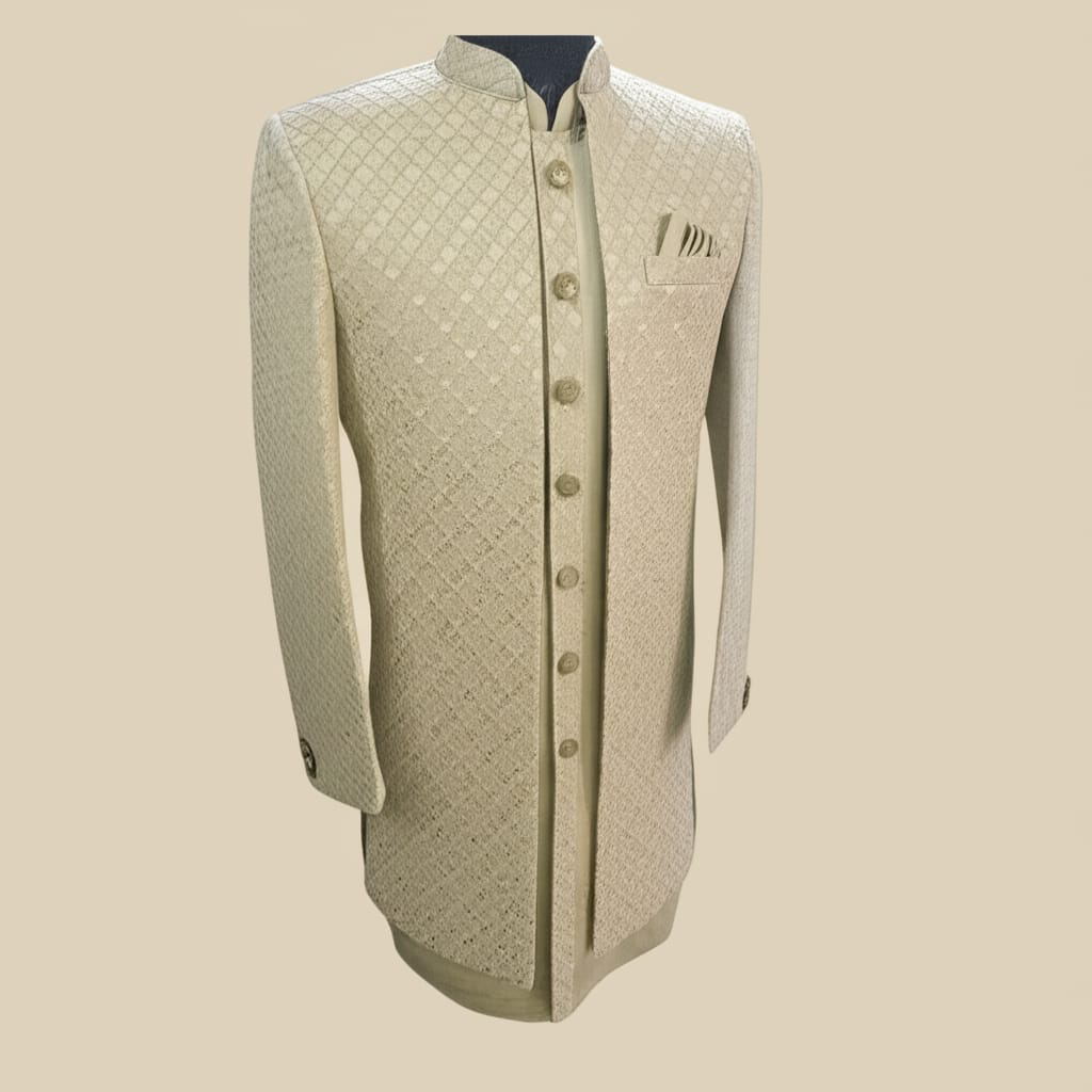 Jacquard light beige/champagne gold color sherwani